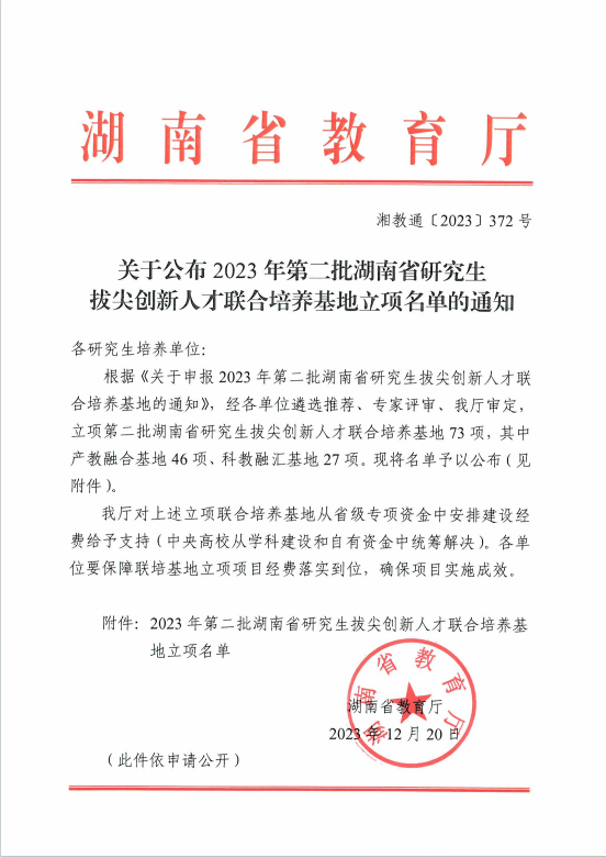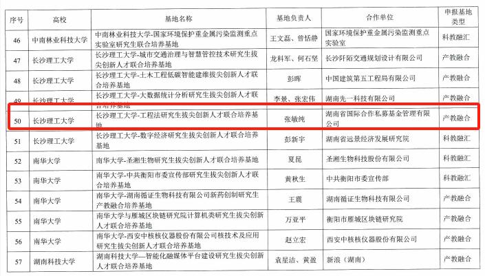 2023年12月20日,湖南省教育厅发布了《关于公布2023年第二批湖南省研究生拔尖创新人才联合培养基地立项名单的通知》,“永利集团88304官网-工程法研究生拔尖创新人才联合培养基地”项目成功获批立项。这是我院获批成立的首个省级研究生人才培养基地。