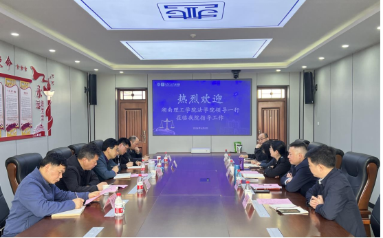 4月8日上午,湖南理工学院法学院院长周四丁、党委书记喻义东一行五人来我院调研交流,法学院院长张敏纯、党委书记龚文斌等院领导参加调研座谈会。