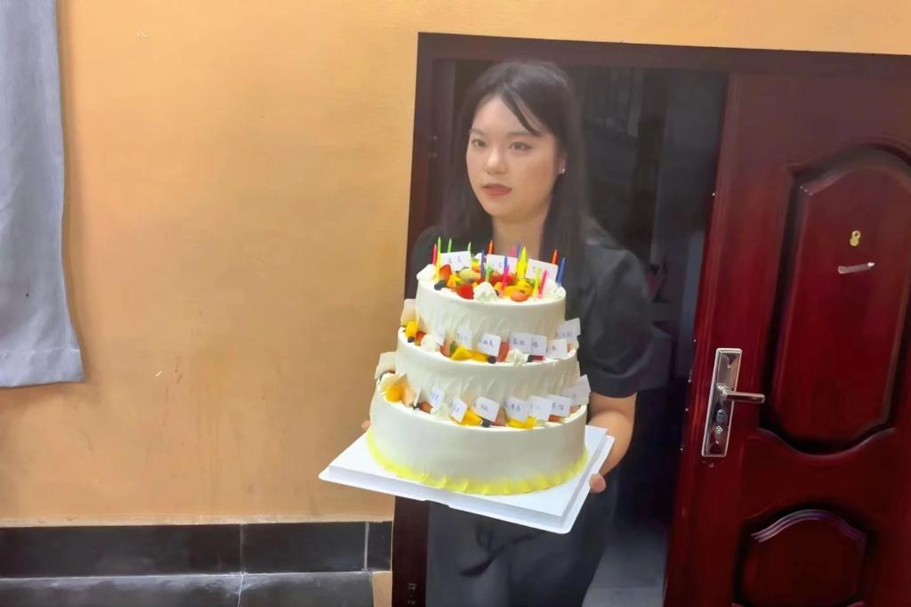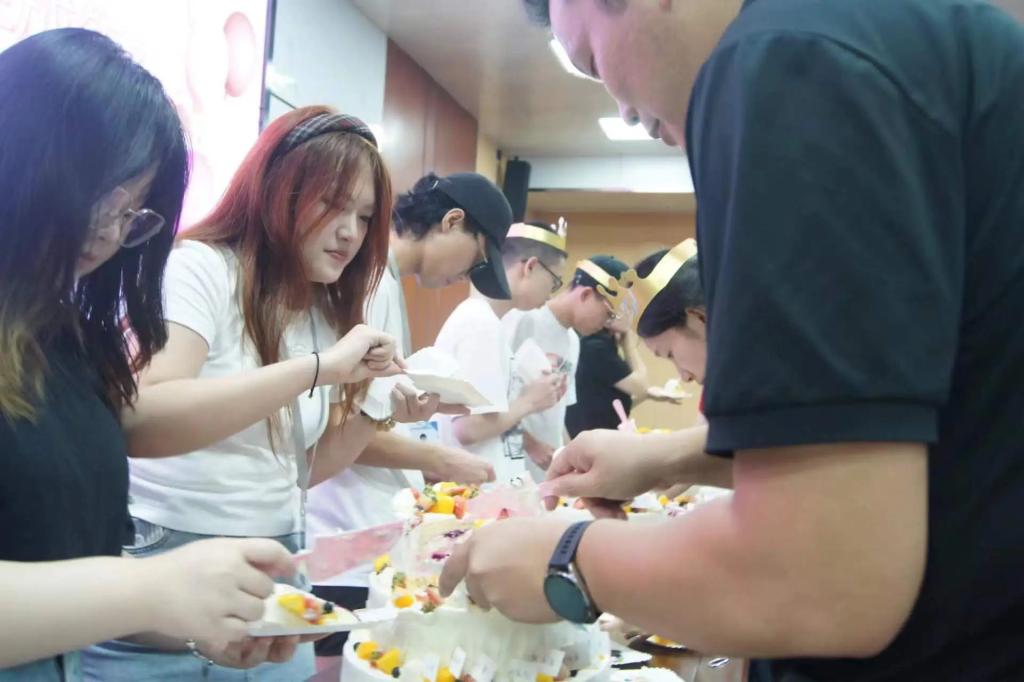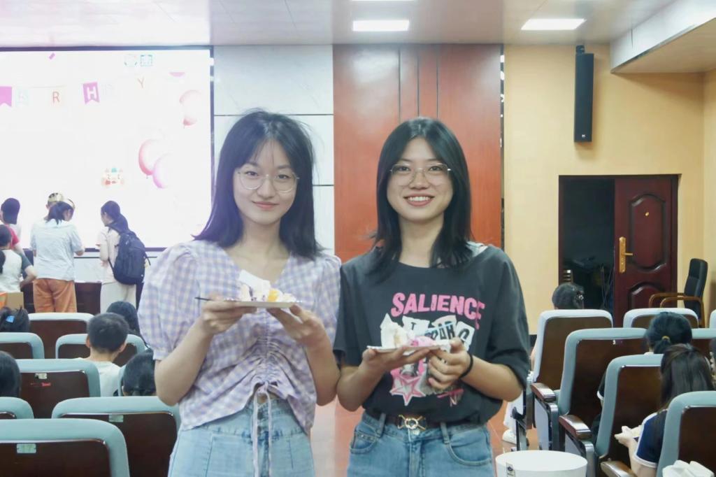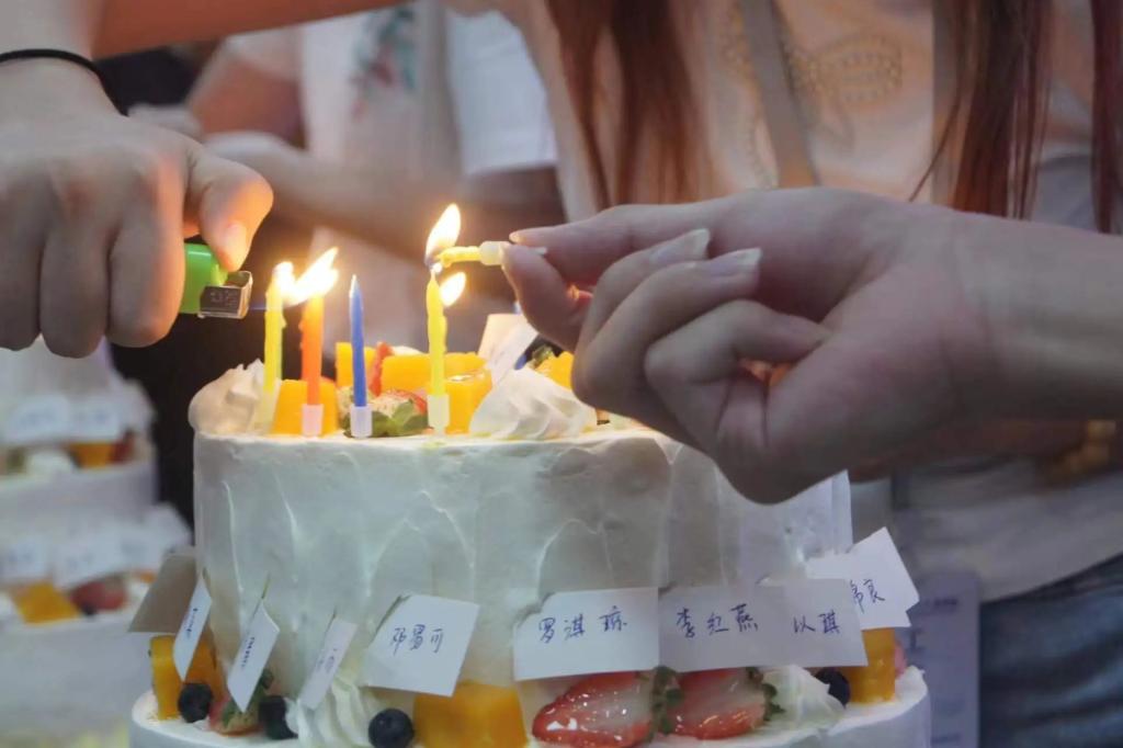 当蛋糕被缓缓切开,每一位新生领到有自己姓名的专属蛋糕,甜蜜的香气瞬间弥漫了整个报告厅。