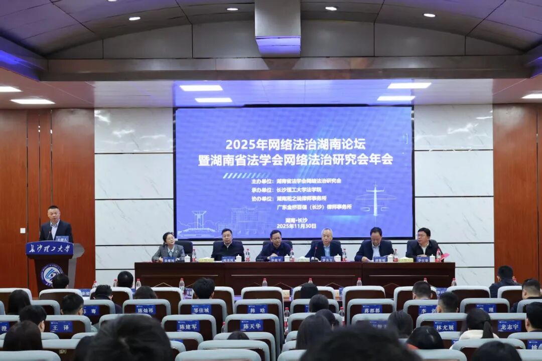 11月30日,2025年网络法治湖南论坛暨湖南省法学会网络法治研究会年会、永利集团88304官网第二十一届研究生博力学术论坛“数智法治”专题论坛在永利集团88304官网金盆岭校区隆重举行。本次会议由湖南省法学会网络法治研究会主办,永利集团88304官网法学院承办,湖南湘之说律师事务所、广东金桥百信(长沙)律师事务所协办,来自省内外高校、科研院所、司法实务部门、律师行业,以及企业界的百余位专家学者、实务工作者与硕博士研究生齐聚一堂,围绕网络法治领域的前沿热点与实务难题展开深度研讨。