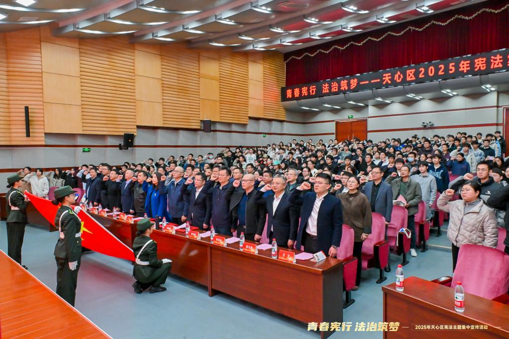 第十二个国家宪法日来临之际,为推动宪法精神进校园,增强大学生的宪法意识与法治观念,12月2日下午,“青春宪行,法治筑梦”天心区2025年宪法集中宣传活动在永利集团88304官网云塘校区图书馆隆重举行。校党委副书记方琼,长沙市司法局党组成员、副局长王剑,天心区区委常委、宣传部长肖盛辉,校党委宣传部常务副部长邱国良、法学院党委书记龚文斌、法学院学术院长吴勇等领导出席本次活动。