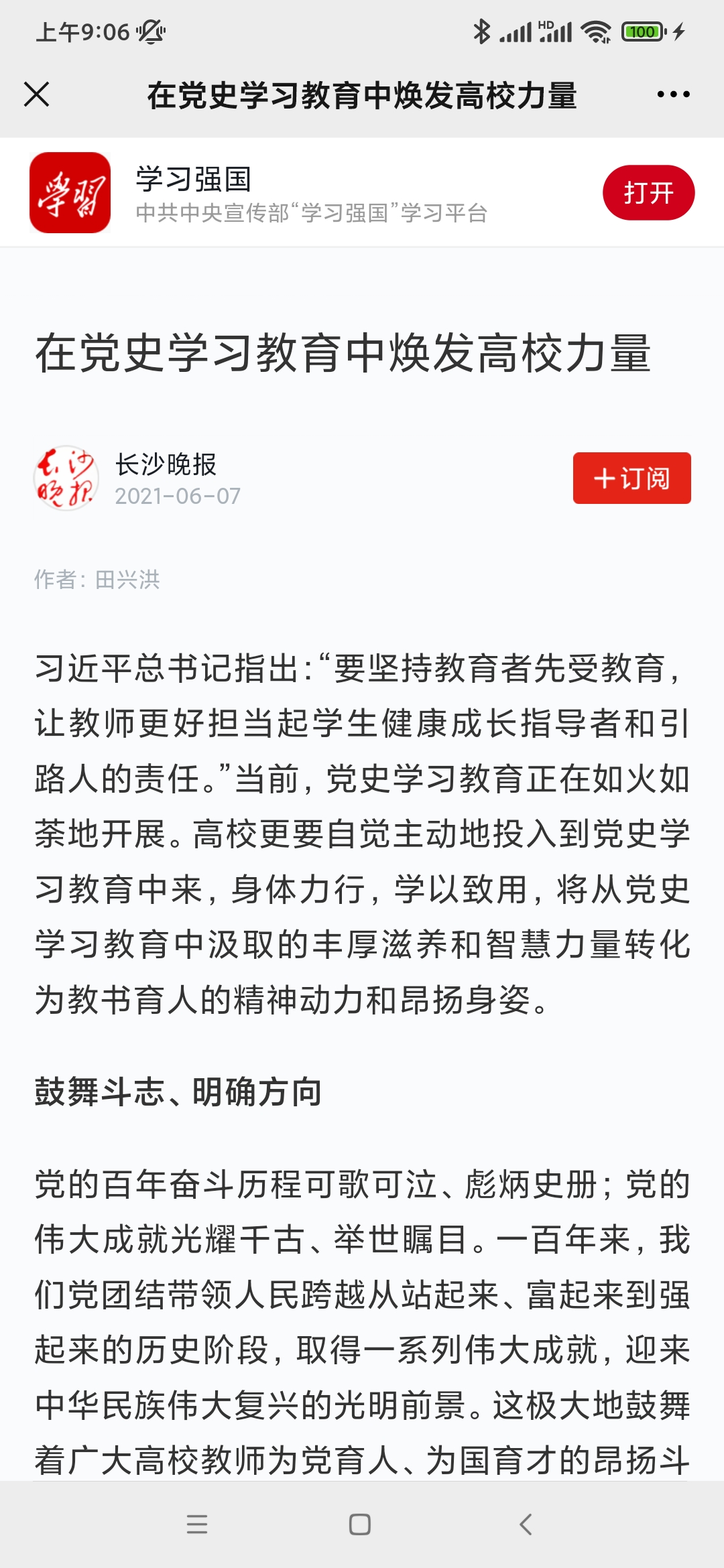 法学院党总支书记田兴洪同志撰写的党史学习教育文章《在党史学习教育中焕发高校力量》,在《长沙晚报》(理论版)《长沙晚报掌上长沙》同步发表,并被《学习强国》采用,全文如下: