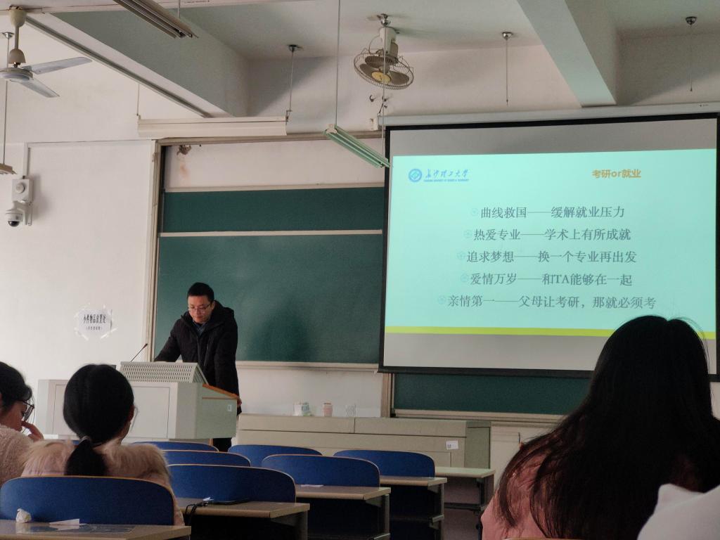 在大一年级,刘阳老师通过是什么——职业生涯概述、为什么——职业生涯意识的重要性、如何做——有趣的生涯理论及其适用等三方面内容,为同学们唤醒职业生涯意识提供了启发。在大四年级,则通过历年学校、法学系学生考研就业数据分析为同学们做出职业选择、做好职前准备提供了参考依据。