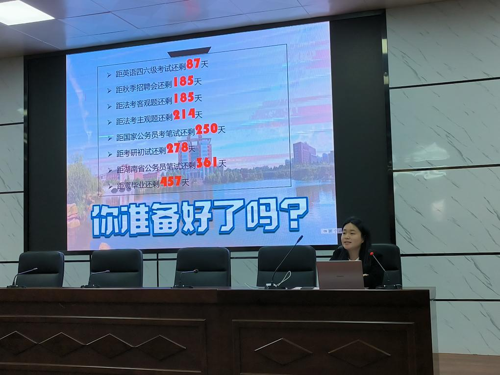 为进一步强化年级学风建设,帮助学生明确自身学业发展和职业规划,树立正确择业就业观。 3月20日下午,法学院在四教学术报告厅举行了以“学情分析明方向,乘风破浪正当时”为主题的年级大会。会议由年级辅导员曾宇欣主持。