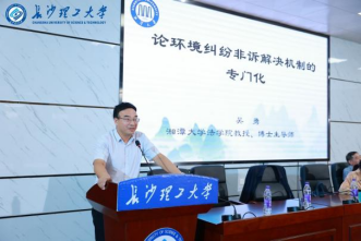 (湖南省环境资源法学研究会副会长、湘潭大学法学院副院长 吴勇教授作主旨报告) |