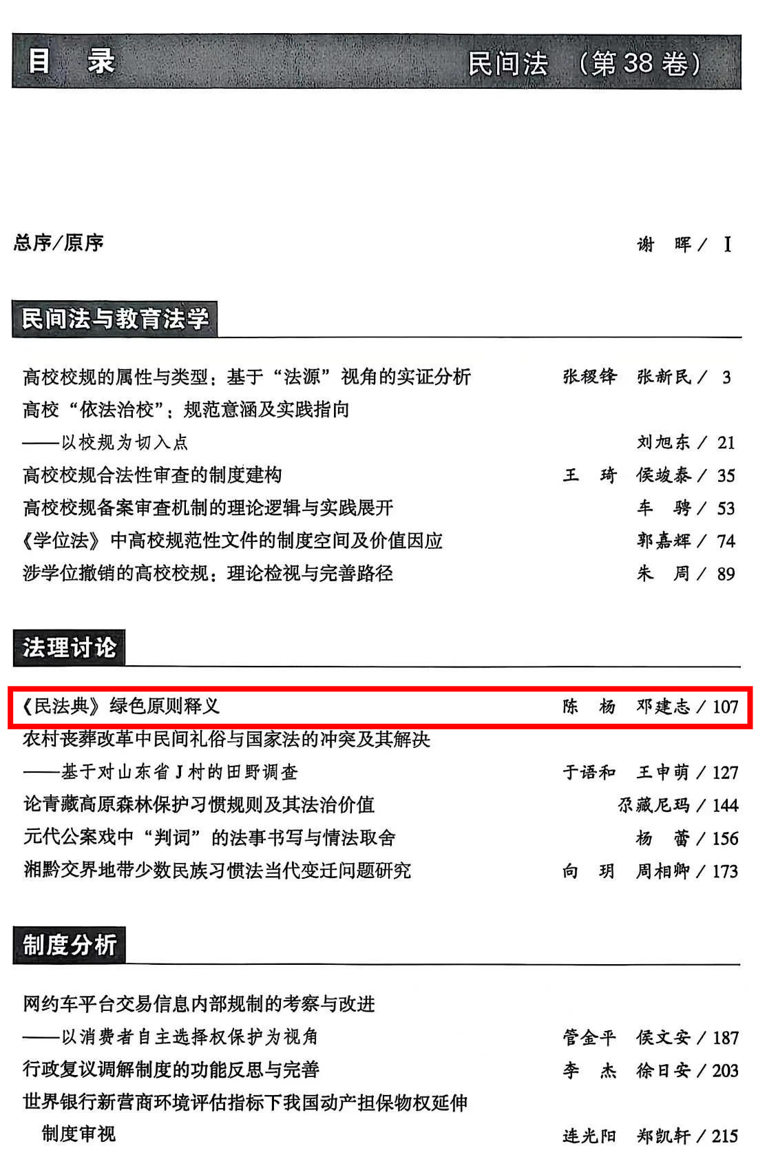 近日,永利集团88304官网法学院副教授陈杨在《民间法》(CSSCI来源集刊)2025年第2期发表论文《<民法典>绿色原则释义》。