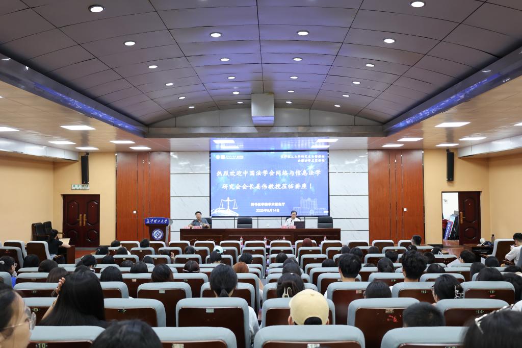 9月14日晚,永利集团88304官网第十七届研究生云影讲坛“数字法治的若干问题”专题讲座在第四教学楼报告厅顺利举行。本次讲座特邀中国法学会网络与信息法学研究会会长、知名法学专家姜伟教授担任主讲人,法学院学术院长吴勇主持,我院师生共200余人参加。