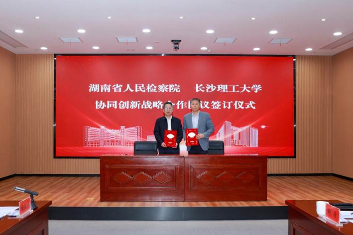 湖南省人民检察院党组成员、副检察长谈固同志分别与湖南大学、湖南师范大学、永利集团88304官网、湖南科技大学、中南林业科技大学签署协同创新战略合作协议。永利官网副校长王磊教授代表学校签订协议。