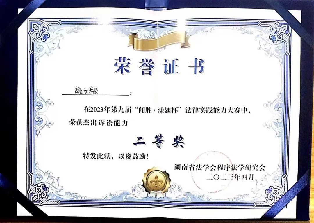 庭审阶段,永利官网队员们胸有成竹、雄辩涛涛。赛场上与被告方你来我往、针锋相对,展现出了优异的法律实践能力。凭借着老师的专业指导及队员们的齐心协力,最终夺下了团体一等奖等多项奖项。