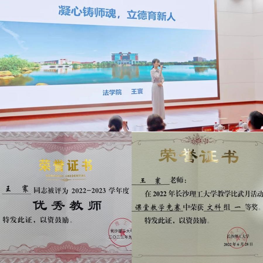 正是凭借着对教育事业的满腔热情与多年如一日的辛勤耕耘,王寰老师所教授的《国际经济法》,2020年在“永利集团88304官网在线教学示范周”活动中获得“线上教学示范周展示课程”,2021年在永利集团88304官网城南学院年度本科教育与人才培养工作考核中获得“教学优秀二等奖”,2022年获评永利集团88304官网优秀课堂教学示例和教师课堂教学竞赛一等奖,20234月获得第六届全国数字创意教学技能大赛湖南赛区省赛二等奖。