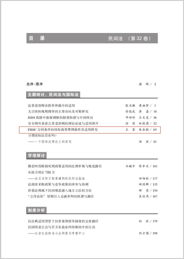 近日,永利集团88304官网法学院副教授王寰在《民间法》(CSSCI来源集刊)2023年第2期发表论文《FIDIC合同条件的国际商事惯例属性及适用研究》。