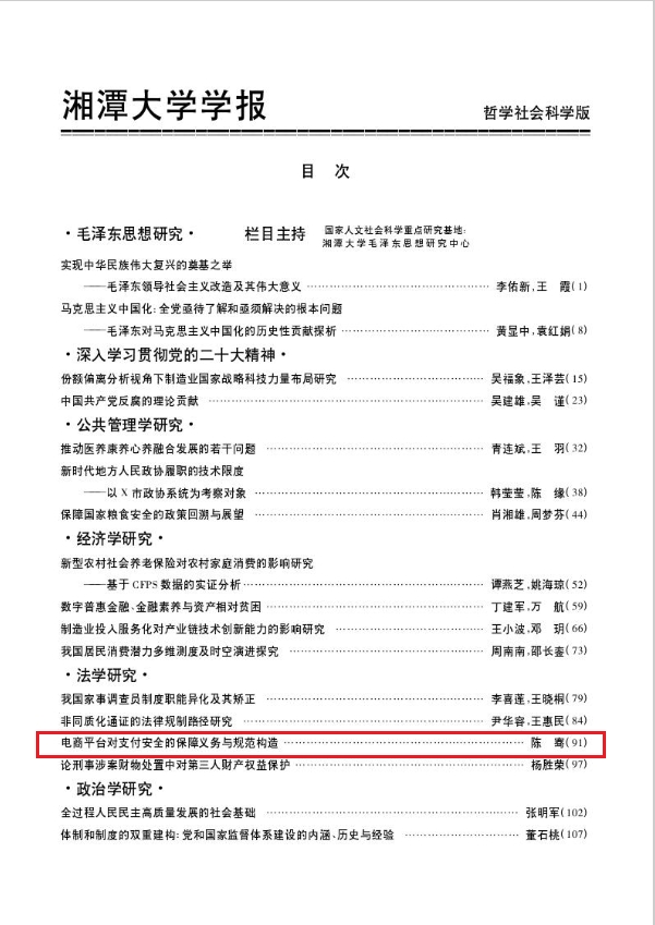 近日,永利集团88304官网法学院讲师陈骞在《湘潭大学学报(哲学社会科学版)》(CSSCI来源期刊)2022年第6期发表论文《电商平台对支付安全的保障义务与规范构造》。