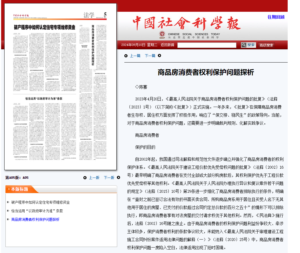 近日,永利集团88304官网法学院讲师陈骞的理论文章《商品房消费者权利保护问题探析》在《中国社会科学报》发表。