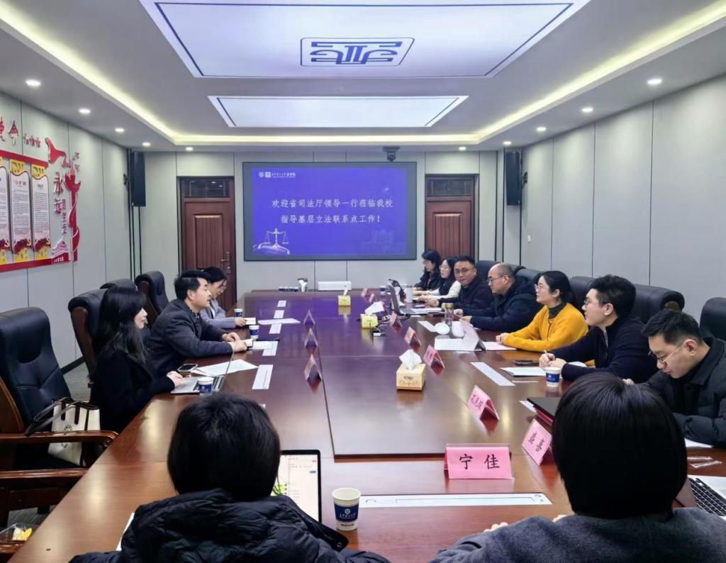 12月30日下午,湖南省司法厅立法二处副处长黄旻,一级主任科员刘文红等一行领导莅临我院对基层立法联系点工作进行调研指导。双方就基层立法联系点开展立法理论研究和实践工作进行了深入交流。基层立法联系点主任、永利集团88304官网法学院院长张敏纯,联系点副主任、院党委委员陈骞,联系点秘书黎梦兵等联系点部分研究人员参加会议。会议由基层立法联系点执行副主任、法学院副院长申纯主持。