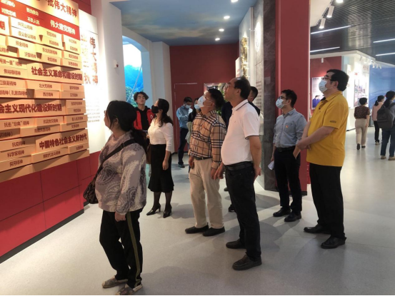 在讲解员的引领下,老师们沿着“国之大者”“材之茂者”“师之贤者”和“行之实者”四个篇章路线听讲解看图文有序观展。代久远的课程教具、微缩复刻的港珠澳大桥和矮寨大桥、熠熠生辉的“学科树”、美轮美奂的音符路等共2000余幅(件)照片、实物、模型等让大家惊叹不已。通过沉浸式体验堂内容鲜活的思政课富含思政元素的工程实践课坚定了大家立足本职岗位做好工程实验实训教育教学的决心,激发了大家“为党育人、为国育才”的使命感