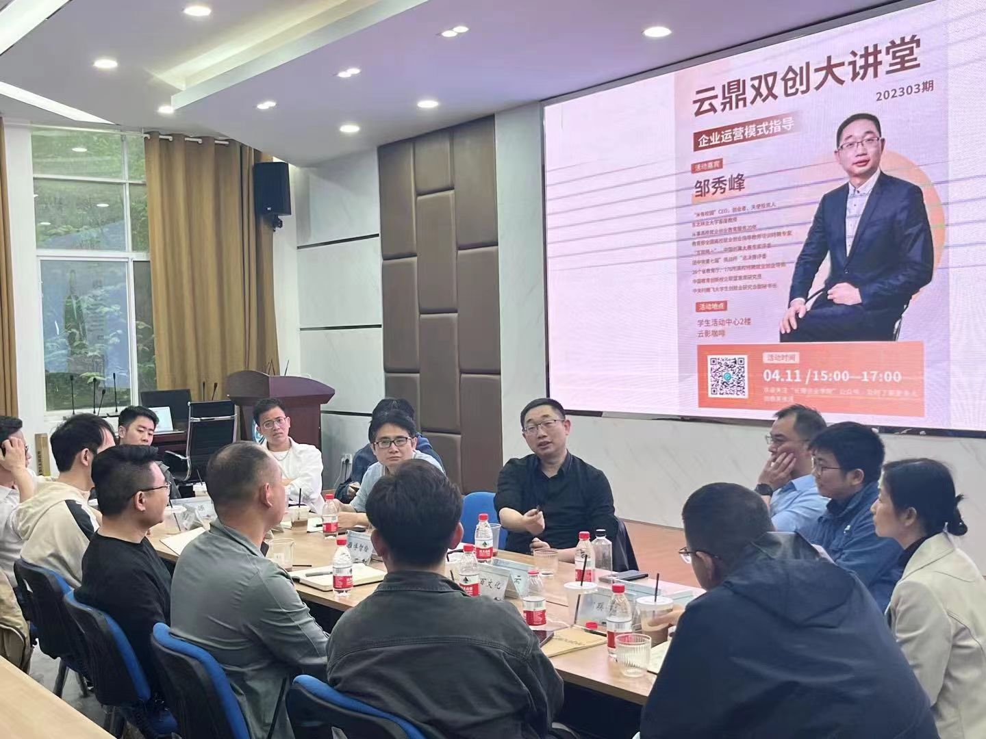 4月11日下午,创新创业教育学院在学生活动中心A207举办“云鼎双创大讲堂”第2303期讲座暨企业商业模式咨询活动。本次活动邀请的专家是教育部全国高校就业创业指导教师培训特聘专家、教育部“互联网+”大学生创新创业大赛专家评委、团中央第七届”挑战杯“总决赛评委、人社部中国创翼大赛专家评委、东北林业大学客座教授、天使投资人、米有校园CEO邹秀峰,学院副院长李晓、创新创业教育办公室主任常晗、永利官网创客空间入驻的12家企业负责人参加了本次咨询。