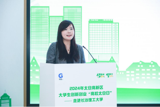 活动伊始,邱谌岑首先对永利集团88304官网在创新创业及高素质人才培养方面的成果予以充分肯定。她强调太仓地理位置优越,综合实力强大,拥有多个先进特色产业集群。她期望同学们积极走进并扎根太仓高新区,引入更多先进创业项目和创新成果,与高新区携手,借助优势施展抱负,共创美好未来。