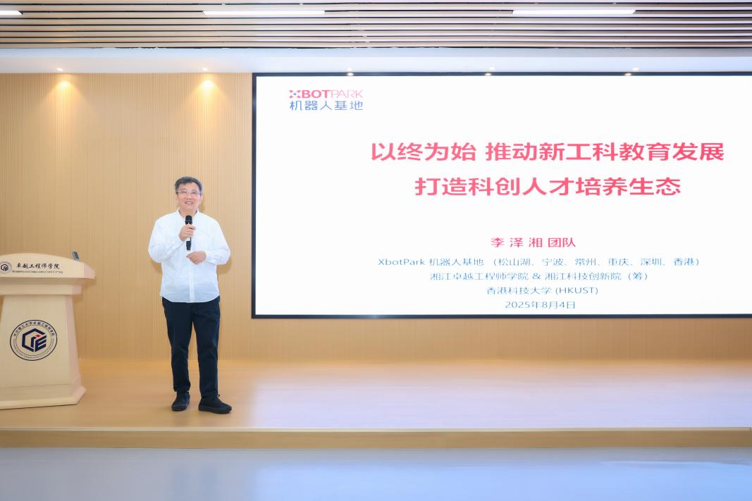 2025年8月8日,由湖南省教育厅主办,永利集团88304官网卓越工程师学院承办,湘江科技创新院、XbotPark机器人基地协办的2025年湖南省普通本科高校创业教育暨新工科教学理论与实践骨干教师培训班,在长沙顺利结业。50余所来自中国各地高校、科研院所的100余名骨干教师,通过5天的深度学校交流,为新工科人才培养探明改革核心问题。