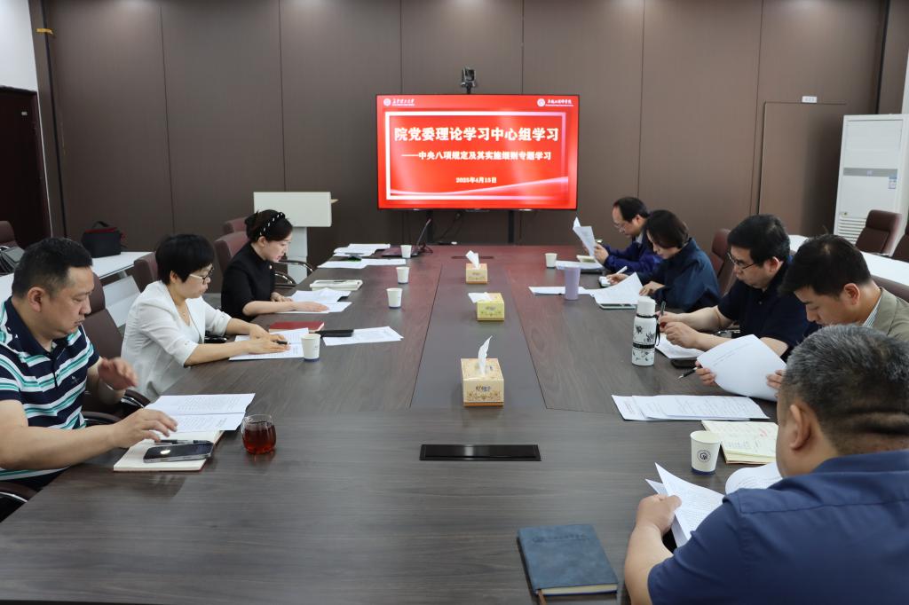 4月15日上午,院党委理论学习中心组在新工训大楼417会议室召开深入贯彻中央八项规定精神学习教育专题学习会。院党委理论学习中心组全体成员参加学习。副院长杨现锋、组织员李凡列席参加。学习会由院党委书记杨晨主持。