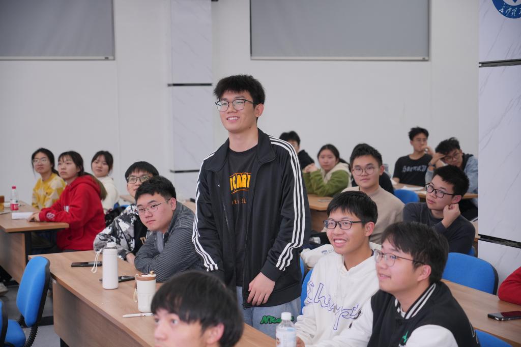 与会学生就感兴趣的竞赛项目与两位教授展开了深入的交流,两位教授耐心解答,丰富的知识、育人的情怀赢得同学们的阵阵掌声。
