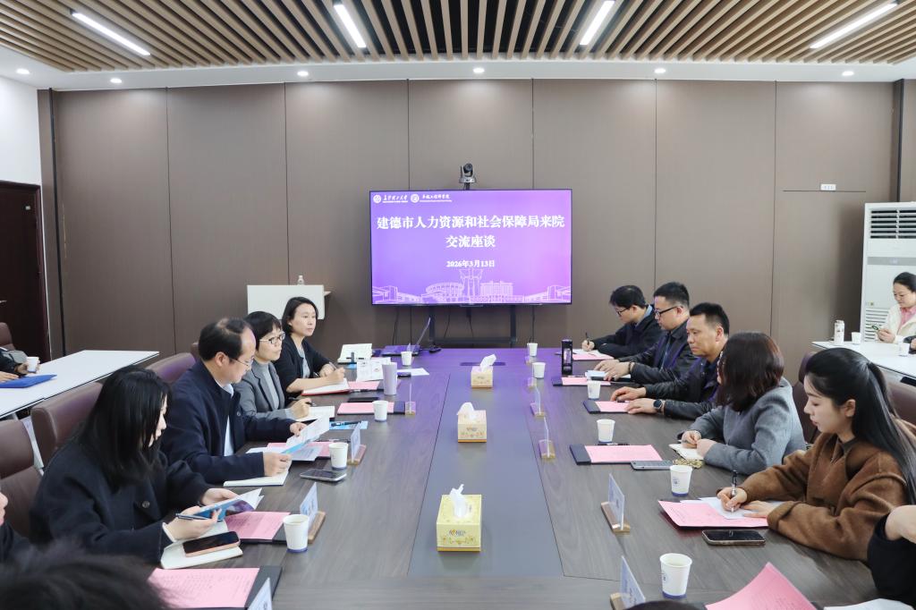 余丹介绍了建德市当前的产业发展布局以及为鼓励青年创业所打造的优良营商环境。徐志强全方位讲解人才引进政策,表示希望深入了解高校在培育创新人才方面的先进经验,并探索校地之间在人才输送、技术转化、产业对接等方面潜在的合作空间。