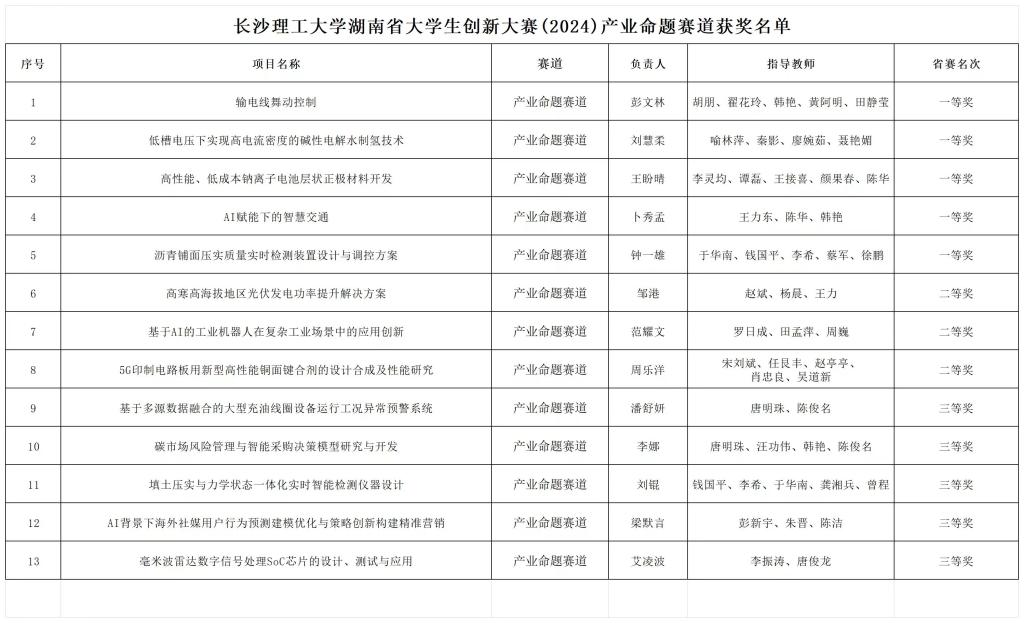 附:永利官网湖南省大学生创新大赛(2024)产业命题赛道获奖名单