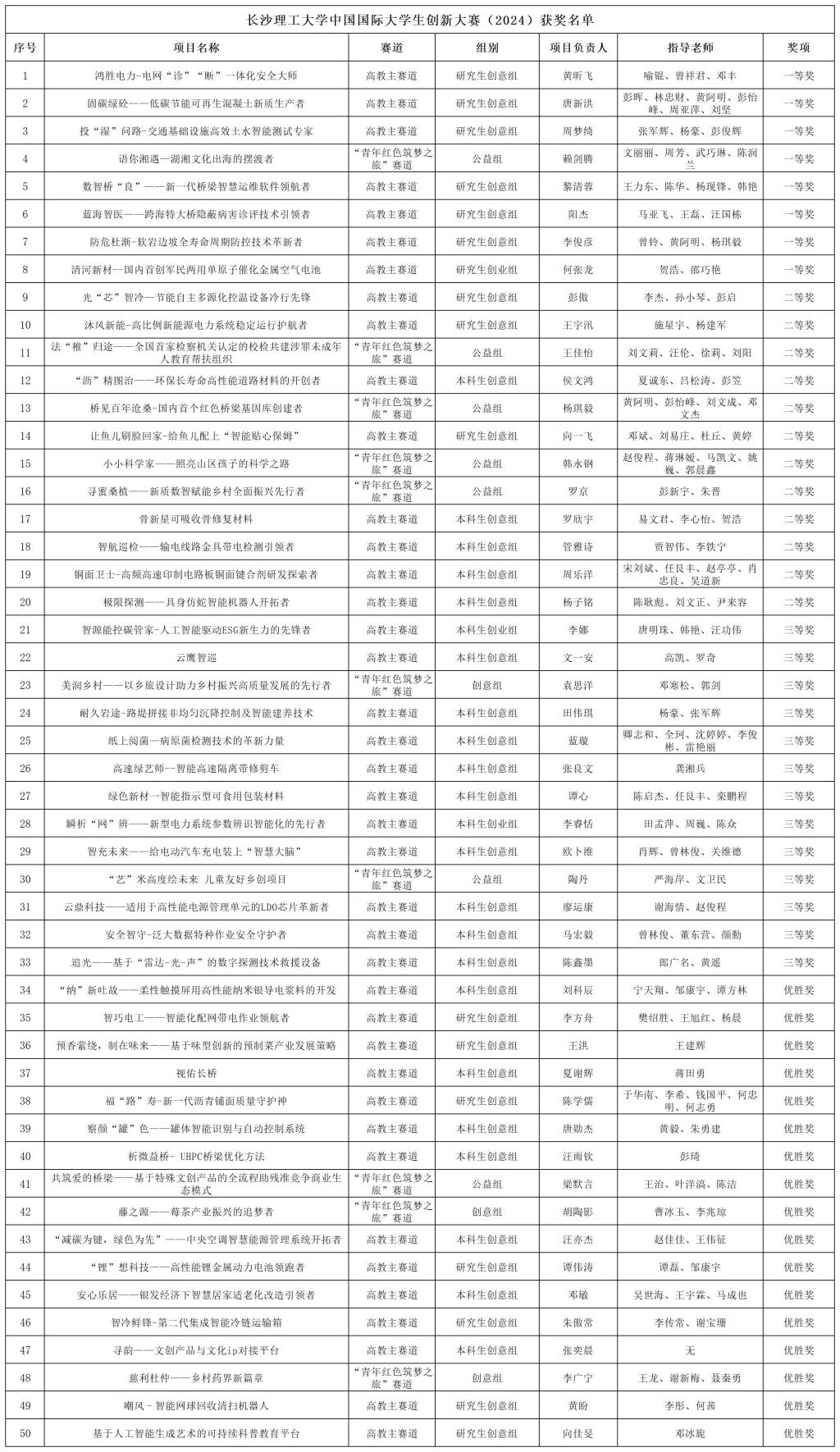 关于公布永利集团88304官网中国国际大学生创新大赛(2024)获奖项目名单的通知
