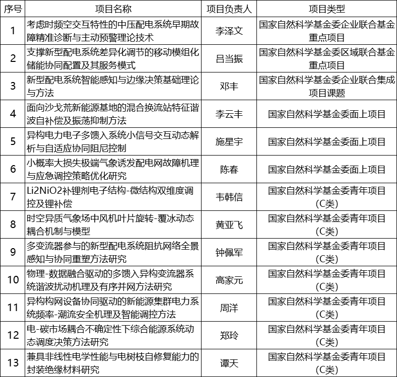 此次立项中,高层次项目表现亮眼:李泽文教授牵头的企业联合基金重点项目获批,聚焦电气信息领域关键科学问题;邓教授主持的企业联合基金集成重点项目成功立项,精准对接行业重大需求;吕当振教授牵头的企业区域联合基金重点项目同时获批聚焦研究新型配电系统差异化储能协同配置及其服务模式立项项目形成高层次项目引领格局。同时,学院获批面上项目3项,青年基金项目7项,立项覆盖基础研究、技术攻关、人才培育等多个维度,体现科研布局的系统性与层次性。