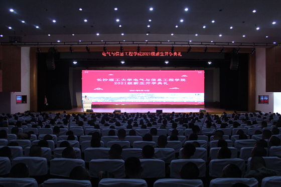 9月10日上午,电气学院在金盆岭校区五教大礼堂召开2021级新生开学典礼,电气学院党委书记符慧林,国网沅江市供电公司客服服务中心副主任、2017届校友周顺,党委副书记任艮丰,副院长马瑞,副院长姜飞,21级班主任老师及学工办全体辅导员出席。电气学院2021级全体本科生、硕博研究生新生参加。