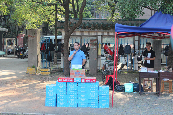 来到军训场地,符慧林首先向军训教官了解训练安排和学生训练的进展情况,他赞扬各训练方队通过短短几日训练,队列整齐、训练有素、斗志昂扬,展现出了电苑学子良好的精神风貌,同时他充分肯定了同学们不畏艰苦的精神。随后,他对参训学生提出两点要求:一要提高认识,以饱满热情投入集训,继承和发扬电气学院精神,展现“王牌电气,谁与争锋”的精神面貌;二要坚持刻苦训练,不在中途放松,一直坚持到最后。最后,他对军训教官的辛勤付出表示感谢,并在下训后向参训学生发放慰问品。