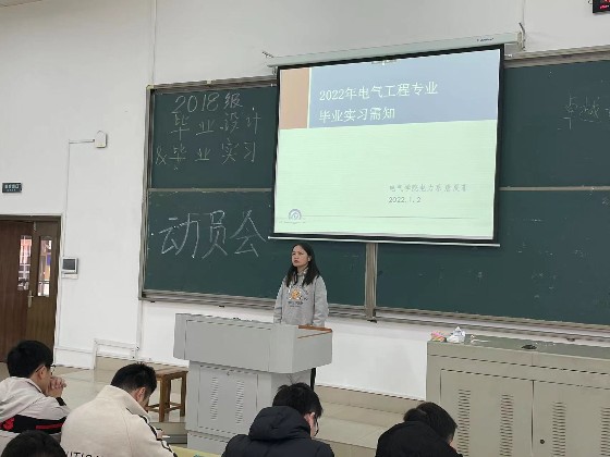 为确保毕业设计和毕业实习工作的有序推进,引导同学们做好准备工作,1月3日下午,电气学院于综合教学楼B302召开电气专业2018级毕业设计与毕业实习动员会,电力系主任邓丰、副主任唐夏菲、2018级辅导员田孟萍出席,2018级全体在校学生参加,此次动员会由电力系唐夏菲老师主讲。