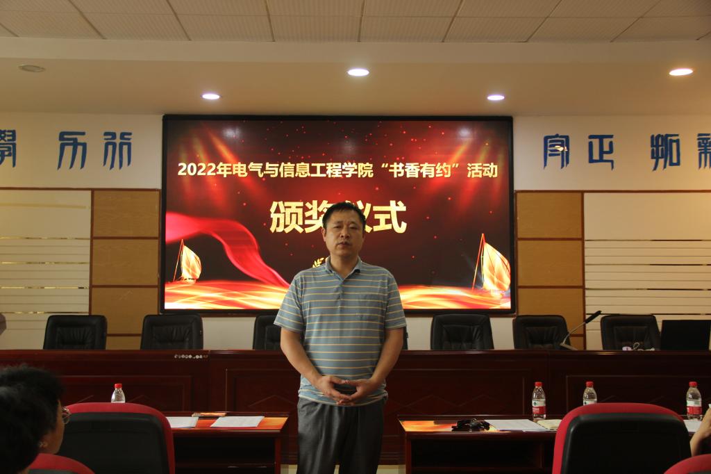 6月7日下午,电气学院于工一b503举办2022年“书香有约”活动颁奖仪式。电气学院党委副书记任艮丰、团委书记田孟萍、学工办老师杨宸君、范凯、张一鸣出席,2022年“书香有约”活动获奖者及低年级学生代表参加本次活动。