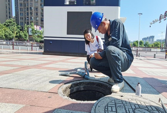 “054号井探测结束,请记录工井工况。”为及时掌握电缆状态及输电设备运行情况,确保夏季高温时节用电畅通,7月12日上午,电气学院赴国网邵阳实践队队员在技术队工作人员李师傅和谭师傅带领下开展电缆探测工作。