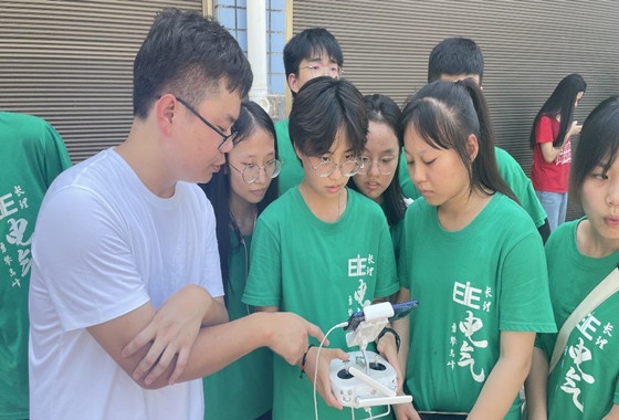 最后,在无人机巡检中心副书记刘琛村的带领下,队员们来到无人机巡检中心进行实地参观及现场实操。据悉,超高压输电公司的无人机巡检水平位于湖南省前列,大量无人机的投入使用极大提升了线路巡检的效率。在无人机维保室内,唐班长为队员们详细介绍了无人机维修的流程、无人机的机型等内容。随后,唐班长带领队员们到室外场地展示使用大型无人机,并教学如何操控小型无人机。