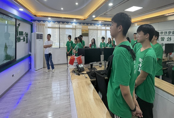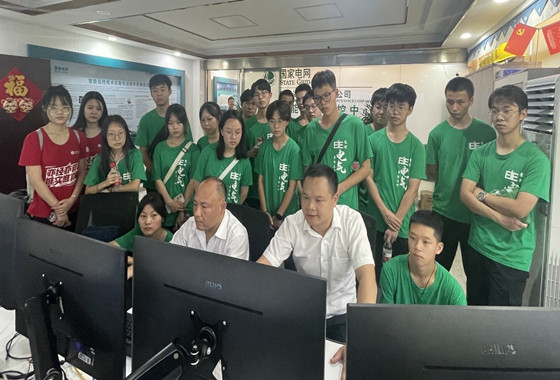 在人资部主任袁丹的带领下,队员们首先了解了湖南超高压输电公司的建设历程、运维管理工作。公司成立于2017年,主要负责500kv及以上线路的输电工作。接着,队员们来到安全管控中心,生产管控中心副主任郑明松详细介绍了生产管控中心的工作内容、工作方式等,并用电脑调出实图为队员们当场分析实况问题。他将生产管控中心比作整个输电工作的“司令部”,统筹管理着输电工作中的每一个环节,为超高压输电保驾护航。