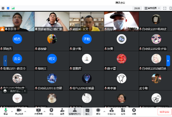 为了进一步了解新生的生活情况,及时发现新生的开学问题,电气学院于8月29日上午召开了2022级新生线上座谈会,电气学院党委副书记陈仁凯、党委副书记任艮丰、副院长唐欣、王文、席燕辉出席,电气学院2022级研究生代表和本科生代表参加会议,会议由任艮丰主持。