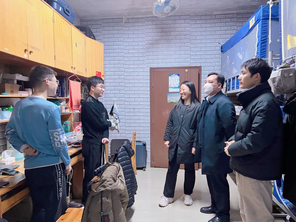走访中,院领导和辅导员亲切地询问同学们寒假见闻、返校情况,认真聆听同学们的感受和想法,并叮嘱同学们注意校园安全,加强身体锻炼,尽快调整生活习惯,进入学习状态,以积极饱满的状态投入到新学期,不断丰富大学生活,开启新学期新征程。