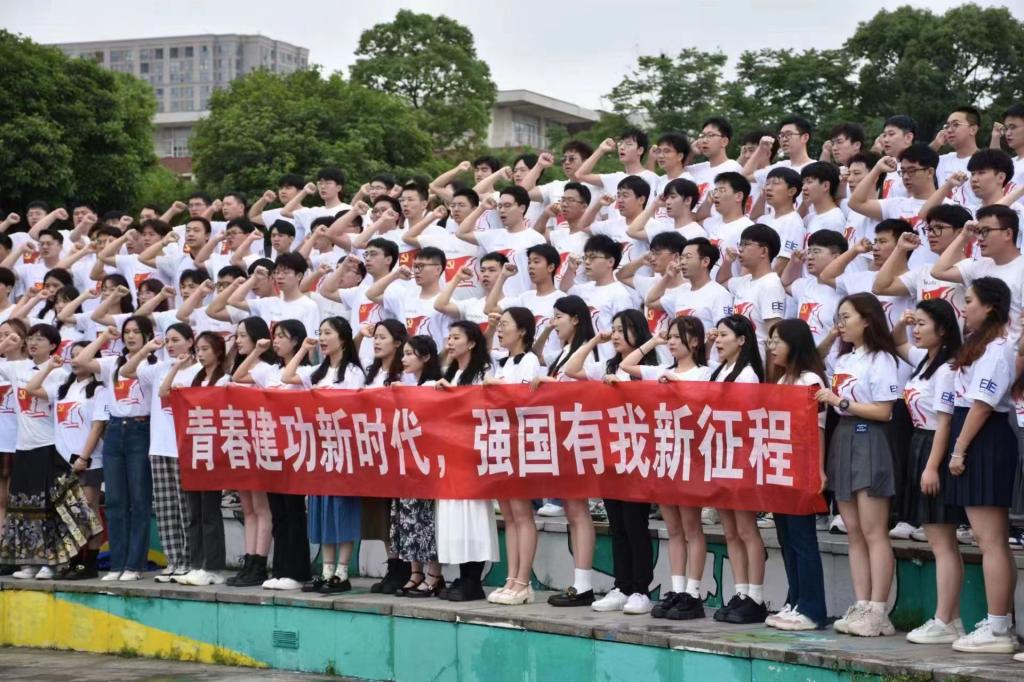 随后,伍接朝领誓,全体毕业生党员高举右拳,重温誓词,庄严宣誓。