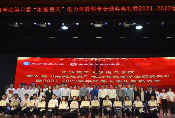 6月6日晚,学院于金盆岭校区五教大会堂举行第六届“湘能楚天”电力奖教奖学金颁奖典礼暨2021-2022学年优秀学生表彰大会。湘能楚天电力集团董事长陈伟其、副总裁冯艳云、薪酬经理张立奇、品宣经理朱雷、永利官网教务处副处长彭晖、学工部副部长陶传谱、校友中心副主任肖晖、研工部思政科科长吕倩出席,电气学院党政领导班子、师生代表一同参与。本次颁奖典礼由电气学院党委副书记陶双主持。