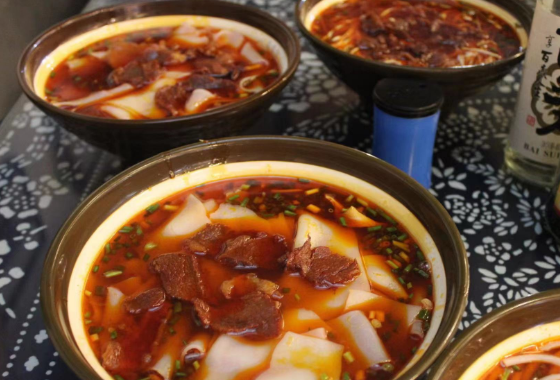 实践队队员们首先品尝了古街特色美食红汤牛肉粉,粉皮配备着大量的卤牛肉、鲜亮的红汤,香气四溢。队员们品味美食后徜徉古街,向东古街是新化县重要的历史文化遗址之一,街道上古迹林立,青石板路上,叫时光慢慢,木窗台发黄,看一段岁月彷徨。接下来队员们到达慎德堂梅山文化馆,了解梅山文化——尚武崇文,杂猱着人类渔猎、农耕并原始手工业发展的过程。