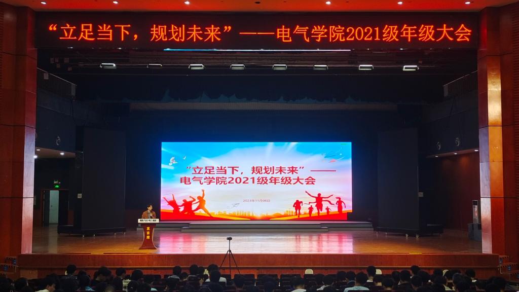 为引导学生更好地树立发展目标、明确个人规划,11月6日晚19:00,电气学院于云塘校区大会堂召开本科生2021年级大会,电气学院2021级辅导员田孟萍、张一鸣及2021级全体同学参加。