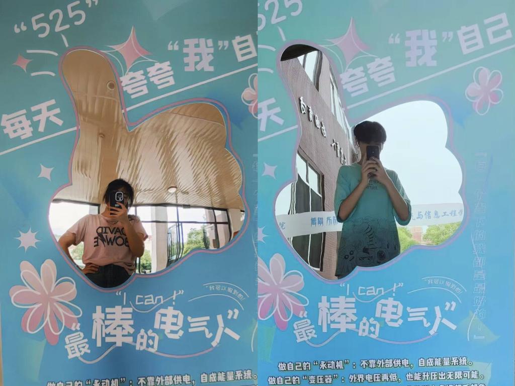 5月20号下午,电气学院在工科一号楼正门口开启“镜映自信:夸夸打卡奇遇”特色活动,作为“心灵绮旅,健康和弦”525心理健康日系列活动的亮点之一,吸引了众多学子热情参与。