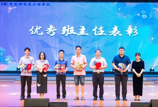 晚会在主持人热情洋溢的开场词中拉开序幕。舞蹈《阿拉松》和舞蹈《SHOOTING-STAR》以轻松愉快的舞步展现青春活力。由文工团带来的乐队表演《奔跑+NEW BOY》将现场氛围推向高潮,活力四射的表演尽显少年意气,引得台下掌声与欢呼声不断。毕业生党员倾情演绎的情景舞蹈《有我》,用肢体语言诠释青年学子的责任与担当,传递出党员学子的初心与使命。学院领导班子深情朗诵的《你的大学,有我的陪伴》,饱含着对毕业生们四年来成长的见证,寄托了师长们的殷切期望与不舍。晚会过程中,特别设置了三个抽奖环节,为毕业生送上学院精心准备的纪念礼品,增添了晚会的趣味性与互动性。晚会还为表现突出的班主任老师颁发“优秀班主任”荣誉证书。晚会在大合唱《凤凰花开的路口》中落下帷幕。