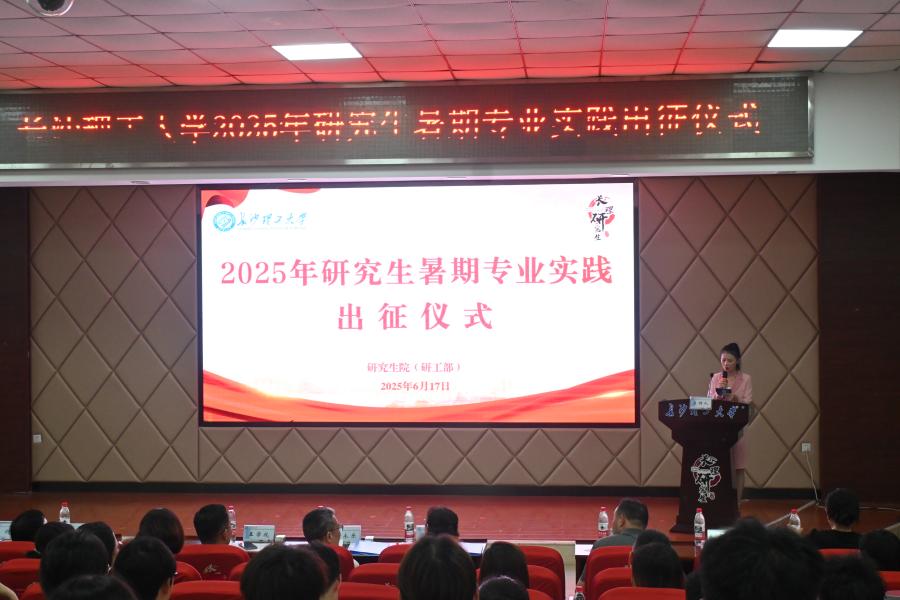 为落实研究生教育要求,提高学生的实践能力,6月17日下午,学校在云塘校区A200报告厅举行2025年研究生暑期专业实践出征仪式。副校长胡永乐,校团委、宣传部等相关部门负责人和各培养学院负责人、研究生辅导员,实践团队指导老师及暑期专业实践团全体成员参加。电气与信息工程学院作为重点实践单位,选派优秀学生代表参与授旗并发言,彰显了学院在电力科技服务与乡村振兴中的专业担当。
