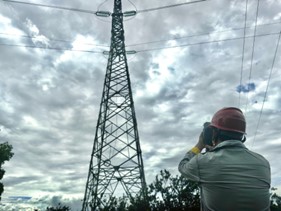 开展线上系统服务的同时,生产小组的成员正深入村舍阡陌对输电线路铁塔开展专项检查,本次检查重点聚焦铁塔关键连接部位,运用红外测温仪对导线接头、线夹等易发热的“关节”进行精准测温,实时记录数据。此举旨在及时发现因接触不良、过载或螺栓松动引发的异常升温隐患,有效预防因设备过热导致的潜在故障风险。同时,另一项重要任务是严控线路通道安全距离。工作人员细致巡查铁塔了周边环境,重点测量并记录了铁塔下方及线路轨道内树木的生长高度,特别标记了那些树冠或枝干生长迅速、已接近甚至达到安全距离临界点的“高危树木”。这些详实的记录为后续及时安排修剪或砍伐提供了直接依据,是消除树线放电、短路风险,确保输电线路与周边植被保持足够安全空间的关键一步。