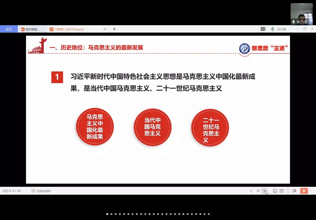 《习近平新时代中国特色社会主义思想》专题由马克思主义学院教授余乃忠主讲。余乃忠从历史地位、主要内容、科学体系、实践要求四个方面详细阐述了马克思主义与中国实际结合的历史脉络,明确了以“八个明确”与“十四个坚持”为主要内容的习近平新时代中国特色社会主义思想的历史地位,强调学生党员发展对象要不忘初心、牢记使命,锐意进取、埋头苦干。余乃忠生动又接地气的讲授让学员们对习近平新时代中国特色社会主义思想的理解更加深刻透彻。