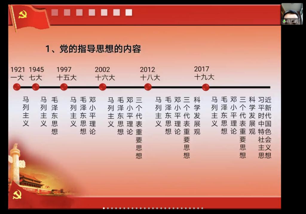 《关于新形势下党内政治生活的若干准则》专题由校友联络专干甘为讲授。甘为以“准则、政治生活、新形势”三个关键词对《新准则》的背景进行介绍,从坚定理想信念、坚持党的理想信念等12个方面对《新准则》的具体内容进行讲解,并强调作为一名学生党员发展对象要不断地加强学习、严格自律,不因为疫情在家而放弃自己的学习。