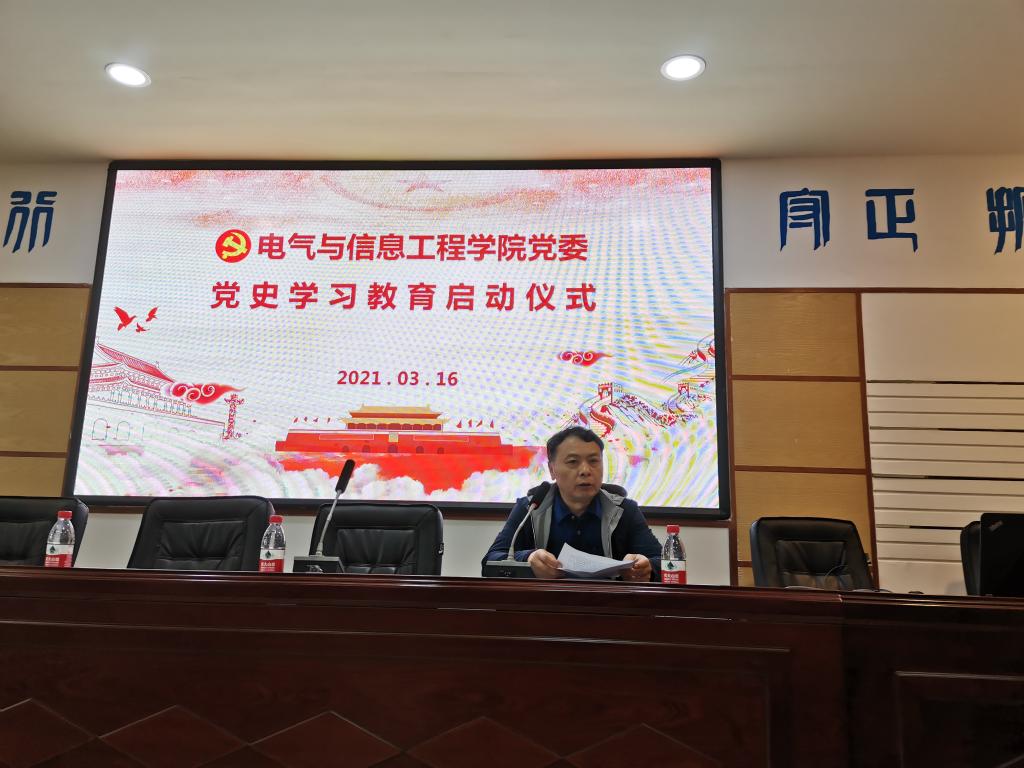 3月16日下午,电气学院党史学习教育启动仪式在工一B503举行。院党委书记符慧林主持并做动员。