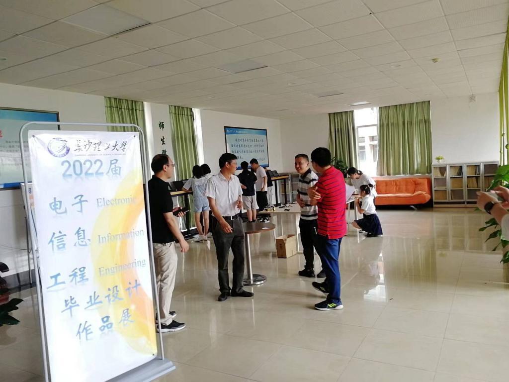 2022年6月14日上午十点,在永利集团88304官网云塘校区工一B区三楼大厅举办了电气与信息工程学院电子信息工程专业2022届毕业设计作品展。本次毕设作品展邀请了电气学院副院长唐欣教授、樊绍胜教授、智电系电子专业曾喆昭、李鸿、王小华等20多位教师观摩评价,电子信息工程2018级全体毕业生以及2019、2020级部分学生参加。参加观摩评价的老师们与毕设参展作品的每位同学进行交流,探讨作品,同时给予相应的建议。老师们这最后一堂现场课不仅是传授着知识,更是表达了对即将完成学业的毕业生最美好的期许。经现场演示和老师们的评议,作品展最后评出了一、二、三等奖共8件优秀作品。