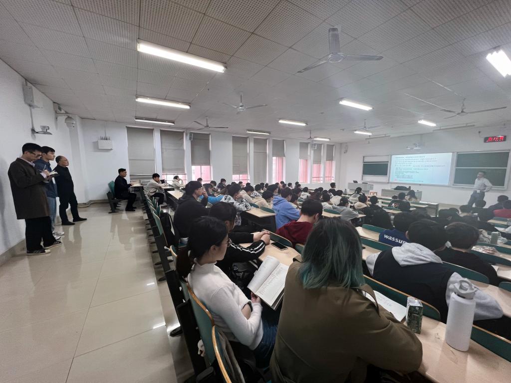 39上午,学院党委书记伍接朝带领系主任、教务办和学工办的工作人员深入云塘综合教学楼、工科一号楼开展课堂教学巡查工作,对6位教师的课堂教学进行了巡查,其中,5位老师在教室正常上课,1位老师开展慕课教学。整体看,老师们都能按照学校课堂教学要求认真组织教学,没有迟到、随意调课现象,教师上课精神饱满,讲课声音洪亮、从容,教学效果较好,孙辰昊老师在教学中还与学生互动,课堂比较活跃。但对课堂教学组织与秩序的管控、教学互动还有提升空间。学生的到课率较高,精神比较集中,上课认真听讲